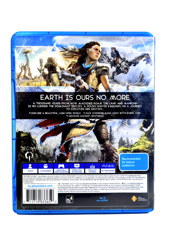 GENUINE ORIGINAL PRINT in excellent condition & 100% complete with contents: HORIZON ZERO DAWN for SONY PlayStation 4 / PS4. This preowned game is in superb condition and includes each of the case + cover + carded insert + game disc. Light laminate wear to case, but this is purely cosmetic, and each of the internal contents are superb.