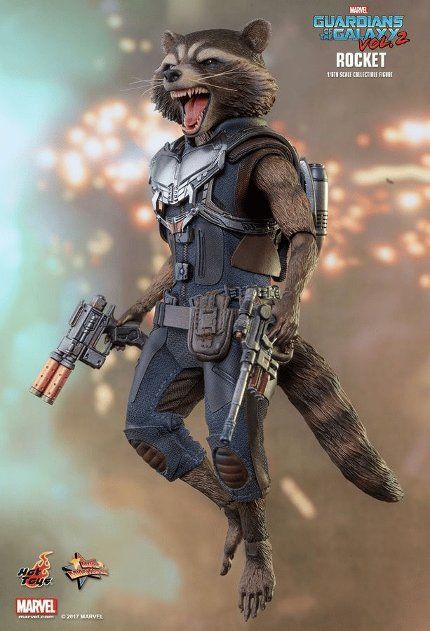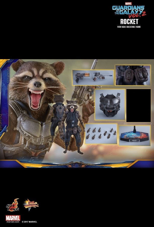 Star-Lord’s gang of misfits will continue their galaxy-saving adventures while exchanging banter with each other in the upcoming sequel to the wildly popular Marvel Studios blockbuster, and all eyes are on how the story will unfold with exciting new characters to meet and new worlds to explore in this outing. Today, Hot Toys is happy to kick-off the 1/6th scale collectible figure series from the new volume with Rocket, the fan-favorite space raccoon with attitude to spare!