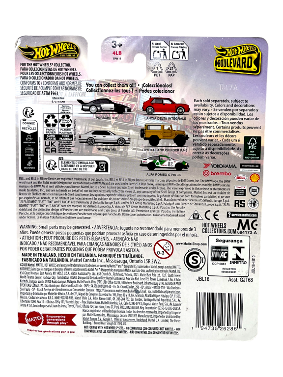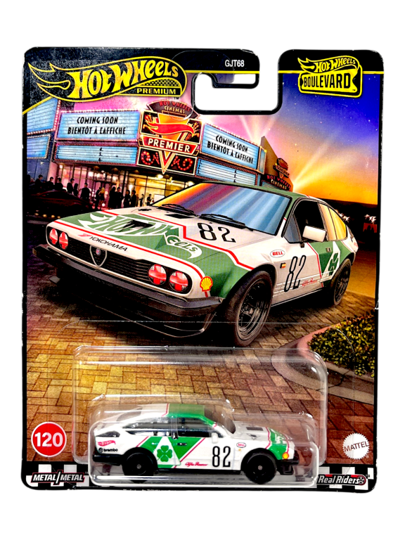 DESCRIPTION: The Hot Wheels Boulevard Alfa Romeo GTV6 3.0 pays tribute to one of Italy’s most distinctive performance cars of the 1980s. Known for its sharp wedge styling and racing pedigree, the GTV6 became a favourite among touring car enthusiasts and Alfa Romeo fans. Hot Wheels recreates the car with impressive detail, premium paintwork, and Real Riders rubber tyres that enhance its display quality. The Boulevard series is well known for celebrating classic performance vehicles from around the world. A beautiful addition for collectors who appreciate European sports cars and the heritage of Alfa Romeo racing.