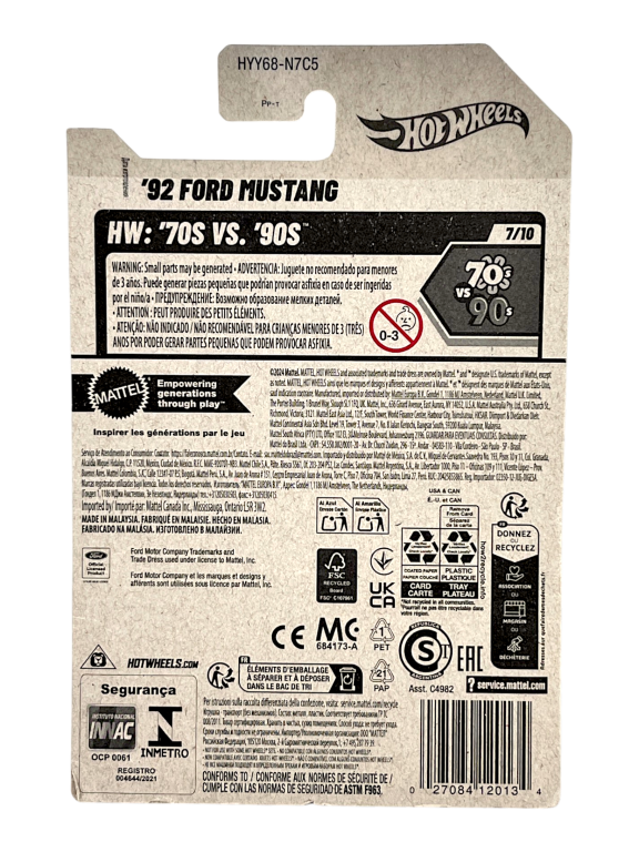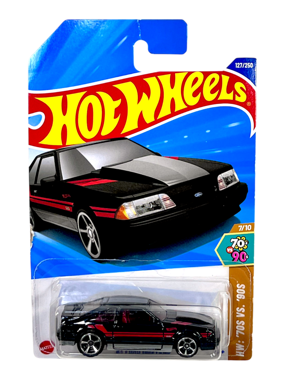 DESCRIPTION: The Hot Wheels Ford Mustang SVO represents a unique chapter in Mustang history from the 1980s. Unlike traditional V8-powered Mustangs, the SVO featured a turbocharged four-cylinder engine designed for improved handling and balanced performance. This die-cast model captures the distinctive styling of the original car, including the signature hood scoop and racing stripe graphics. Part of the Hot Wheels “70s vs 90s” themed series, the vehicle celebrates classic American performance machines from different automotive eras. A fantastic collectible for Mustang fans and anyone who appreciates retro performance cars.