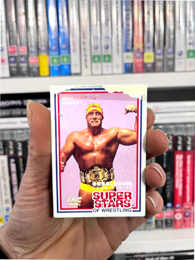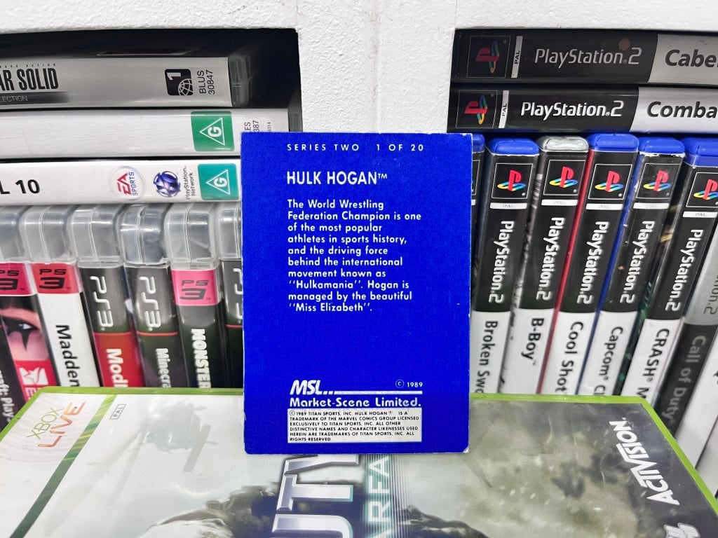 AUTHENTIC HULK HOGAN COLLECTIBLE WWF Superstars of Wrestling Card WWE Superstars of Wrestling Card from SERIES 2 (1989/90). FEATURES GENUINE CHILDHOOD CARD WEAR pictured (retro wear from more than 30 years ago!), and this only adds to the nostalgia and legend. Refer photographs, and grab this icon for your Hulkamania collection today!