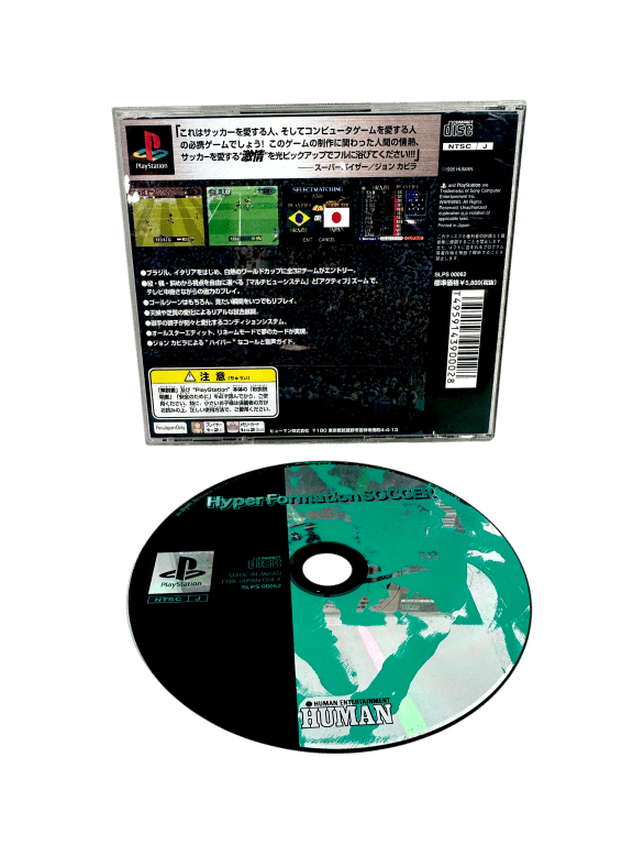 Hyper Formation Soccer (PlayStation, NTSC-J). This preowned game is in excellent condition with only the mildest of disc surface imperfections which do not hinder performance or gameplay in the slightest. This game comes as pictured. Refer to photographs for included contents