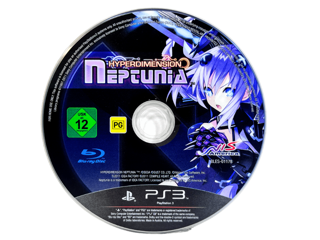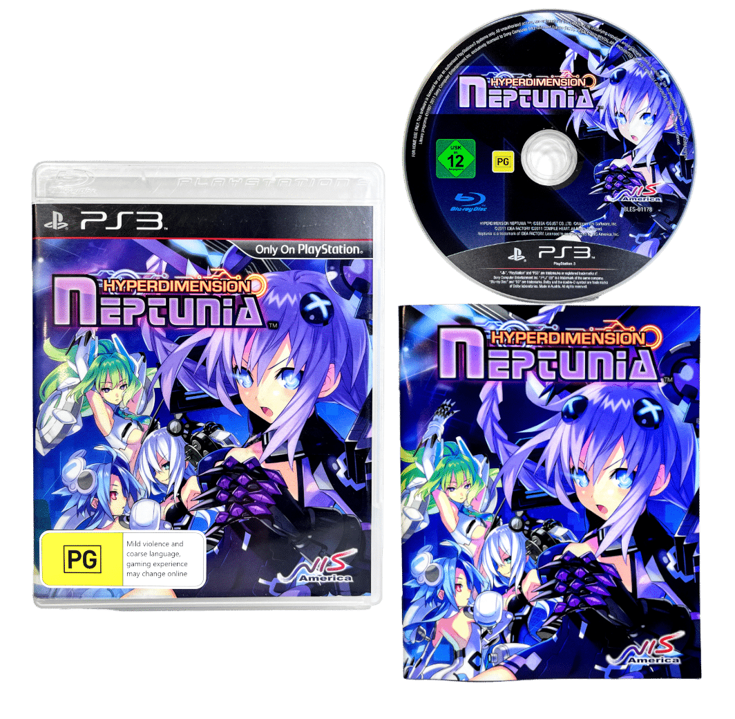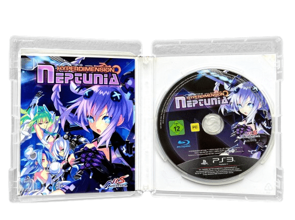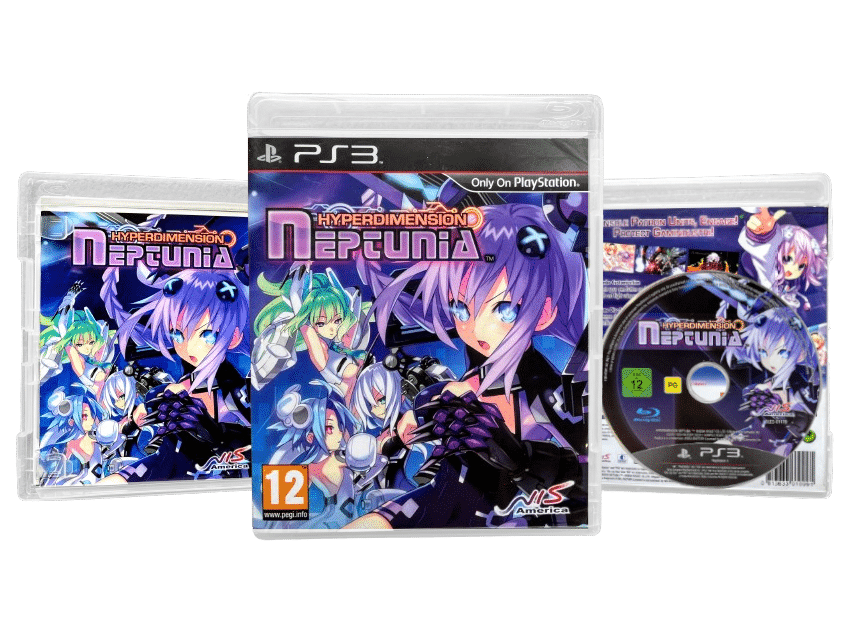 Mint condition & 100% complete with contents: HYPERDIMENSION NEPTUNIA for SONY PlayStation 3 / PS3. This preowned game is in pristine condition and comes complete with case, cover, manual / booklet, and game disc. The only imperfection I could find anywhere was a tiny square of paper discolouration on the paper cover spine near the bottom where a price sticker has previously been removed. And this purely cosmetic. A tidy and complete collector’s item.