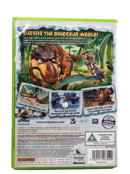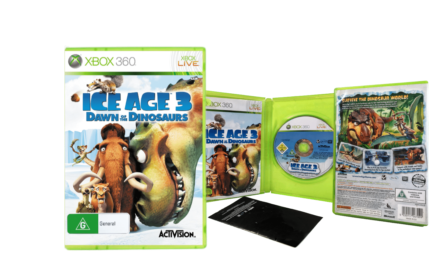 Rare XBox 360 Game in good condition & 100% complete with contents: ICE AGE 3 DAWN OF THE DINOSAURS The Video Game for XBox 360. This preowned game comes complete with case, cover, manual / booklet, and game disc. Some faint superficial markings / cosmetic scratches, but these are very minor imperfections which do not affect game play in any way.