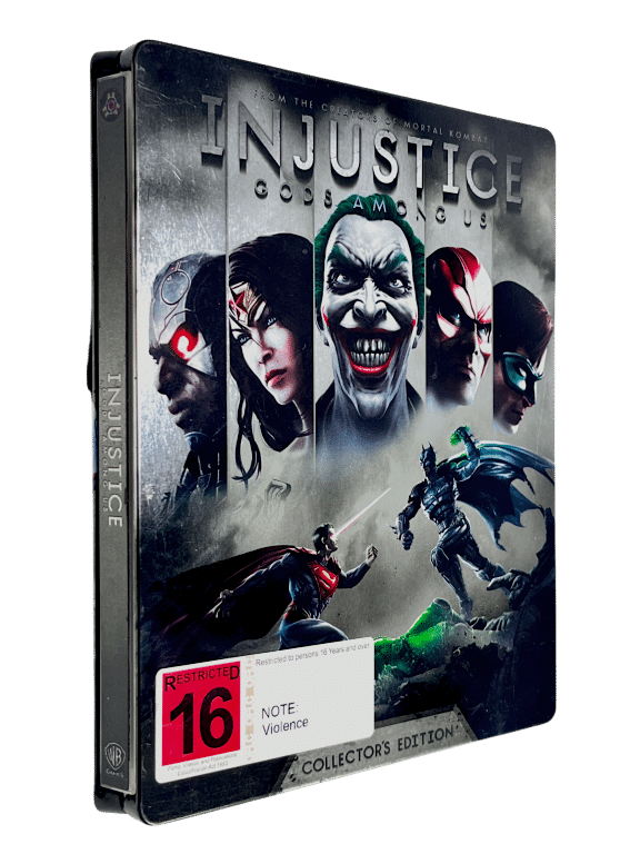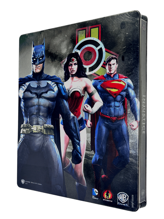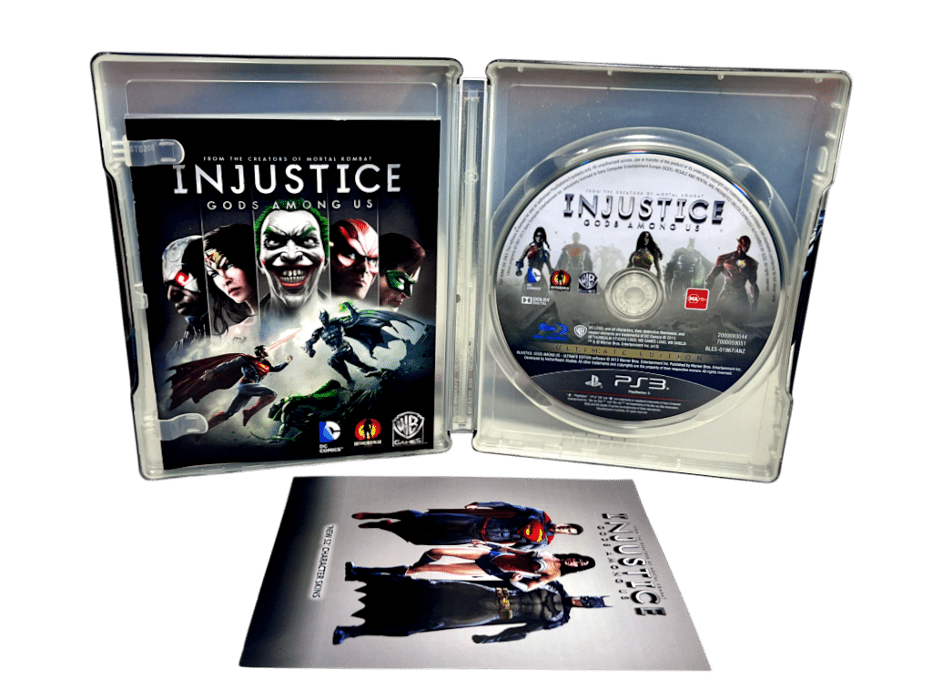 RARE FIND: The Official PS3 ULTIMATE EDITION (WITH BONUS CONTENT) in the Official Limited STEELBOOK RELEASE – in excellent condition & including manual / booklet + carded insert + Official Ultimate Edition Game Disc: INJUSTICE GODS AMONG US ULTIMATE EDITION – STEEL COLLECTOR’S EDITION – for SONY PlayStation 3 / PS3. This preowned auithentic Steel Case Collector’s Release is in superb condition. The inner contents are near-immaculate, and the Steelbook is also excellent with only mild surface blemishes.