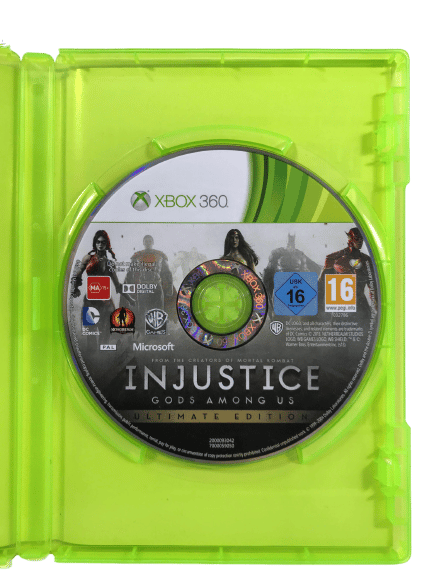 Authentic Ultimate Edition Game Disc and all bonus content included on disc: Injustice Gods Among The ULTIMATE EDITION for XBox 360. This preowned game disc is in excellent condition and comes inside clear case (differs slightly to green case pictured). Please note that the paper cover is not included.