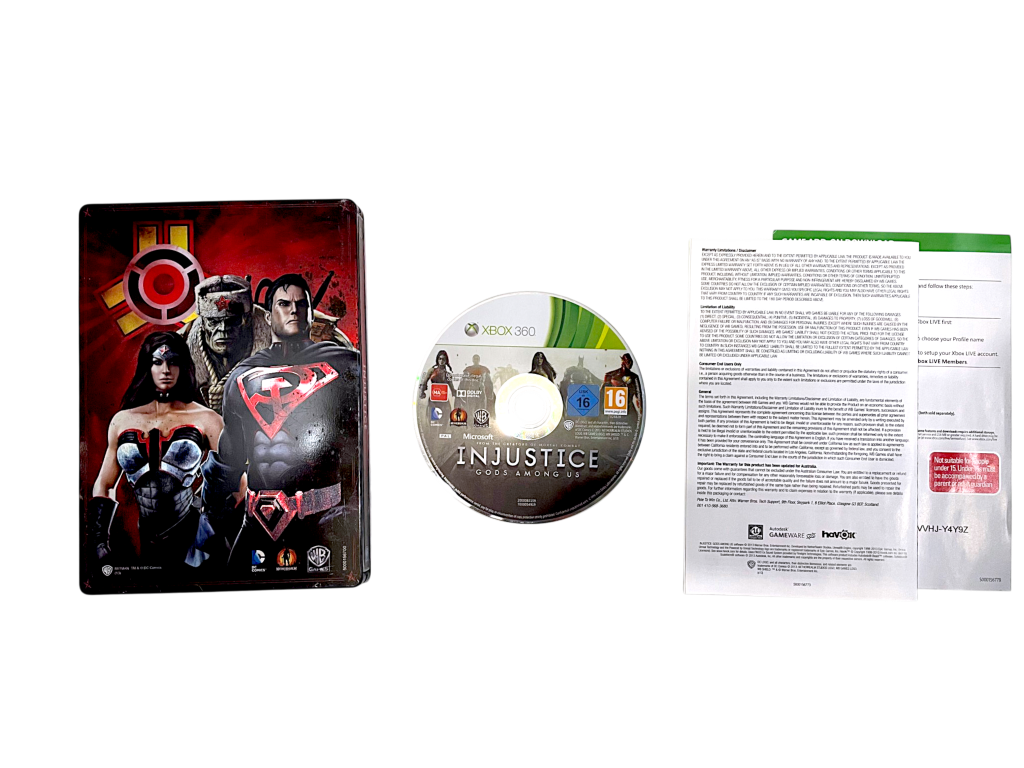 Injustice: Gods Among Us (Xbox 360) STEEL CASE COLLECTOR’S EDITION. This preowned authentic Limited Release Steelbook Edition is in Excellent Condition as pictured. This Special STEEL CASE COLLECTOR’S EDITION. includes pictured contents. A rare collectible to be added to any serious collector’s library. Refer photographs.
