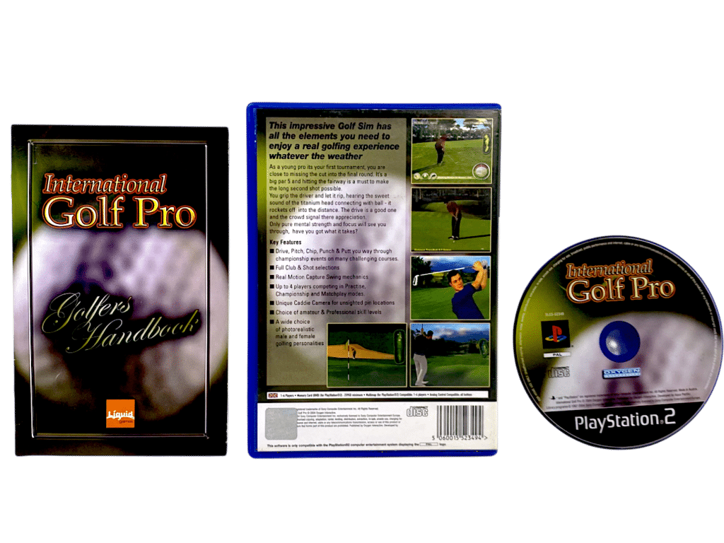 International Golf Pro PS2 Complete. This preowned item is in excellent condition and complete with original case + cover + any pictured internal cards / booklets + disc/s. Refer photographs.