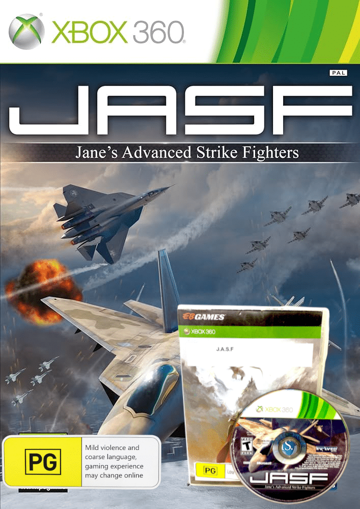 J.A.S.F. Janes Advanced Strike Fighters (Xbox 360) . J.A.S.F. Janes Advanced Strike Fighters (Xbox 360). This preowned Xbox 360 game disc is in excellent condition with mild surface imperfections only. This disc comes inside EB Games Case. Please note that the original case is not included.