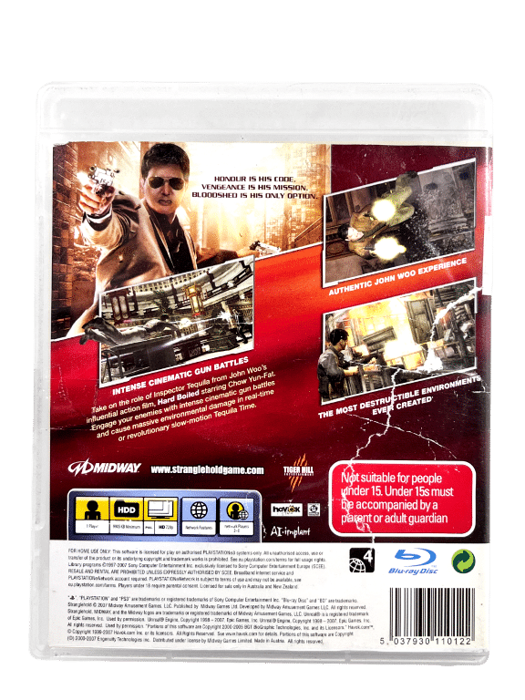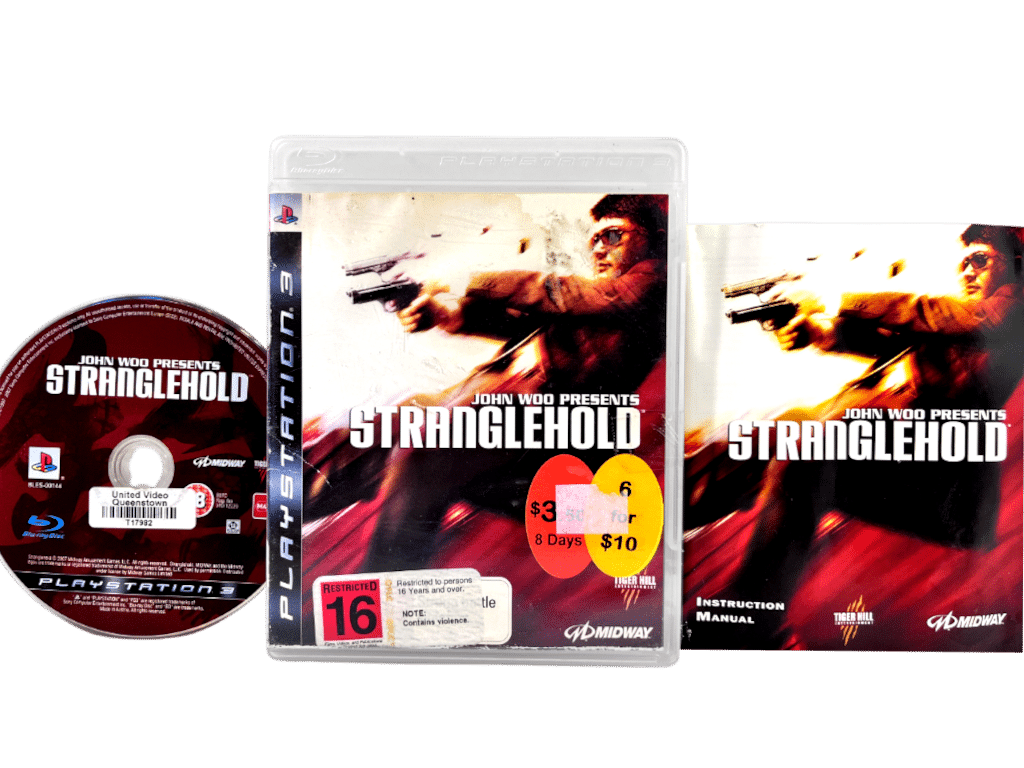 Good condition & 100% complete with contents: John Woo Presents STRANGLEHOLD for SONY PlayStation 3 / PS3. This preowned game includes pictured case + cover + manual / booklet + game disc. Disc excellent. Cover has some ex-rental stickers pictured. An ex-rental game.