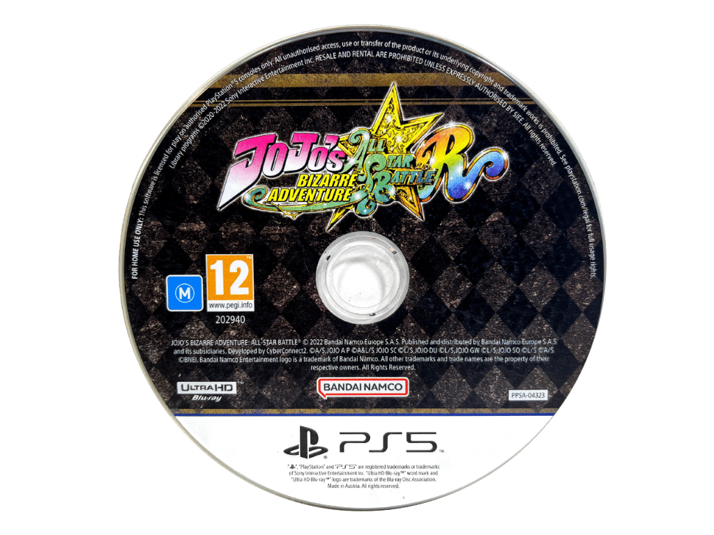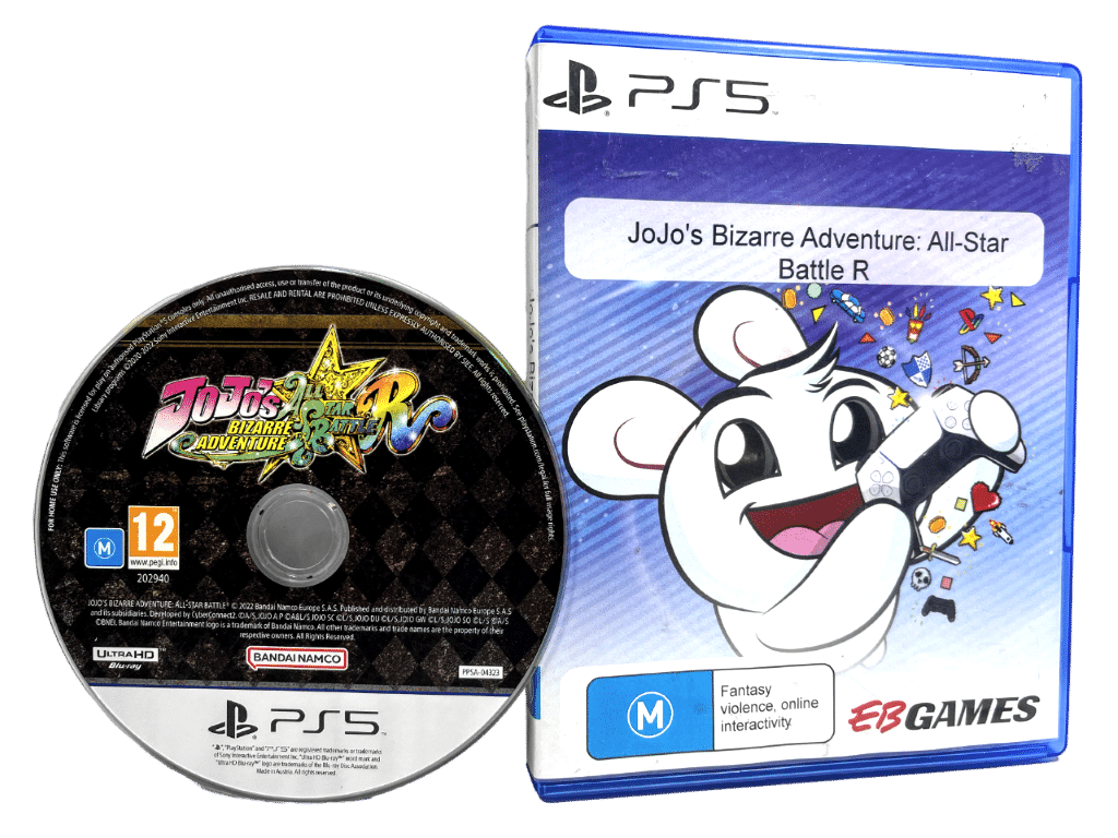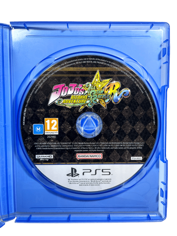 JOJO’S BIZARRE ADVENTURE ALL-STAR BATTLE R / Jojo’s Bizarre Adventure All Star Battle R for SONY PlayStation 5 / PS5. This preowned game disc is in mint condition inside case with EB Games paper cover (not original paper cover).