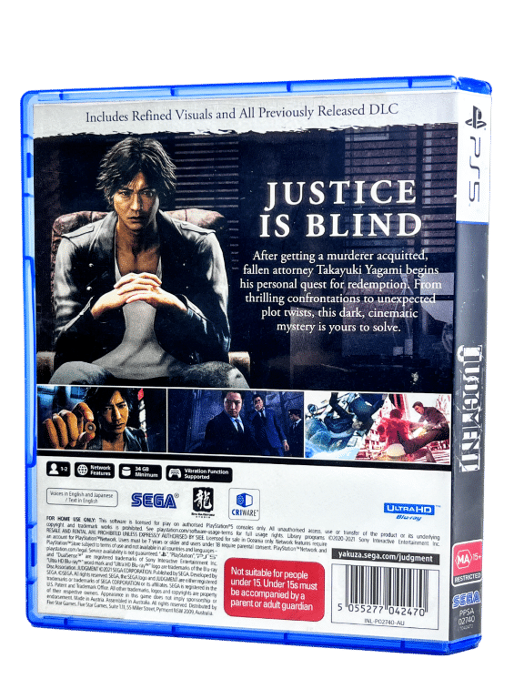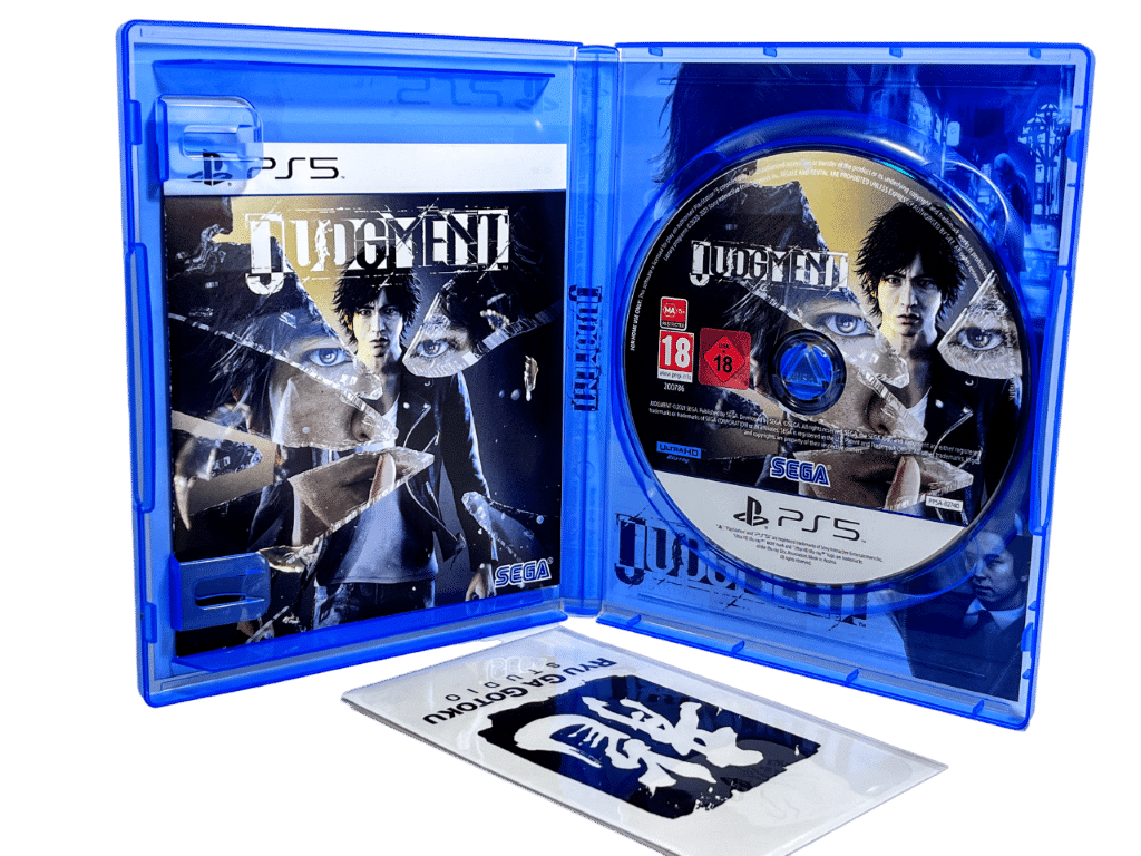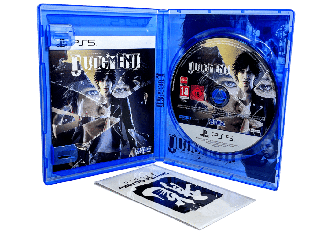 JUDGMENT / JUDGEMENT for SONY PlayStation 5 / PS5. This preowned game comes 100% Complete with Case + Cover + Manual / Booklet + New Sealed Sticker Sheet. Case has light plastic wear, but the contents inside are like new.