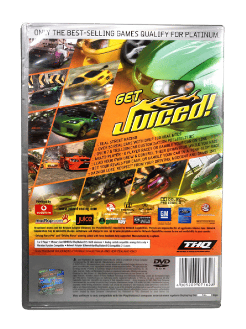 JUICED for SONY PlayStation 2. This preowned game is in good condition with only light surface scratches which do not affect gameplay in any way. This game includes case + cover + game disc. Please note that the MANUAL IS NOT INCLUDED in this listing, but the game is self-explanatory, and the instructions are readily available online.