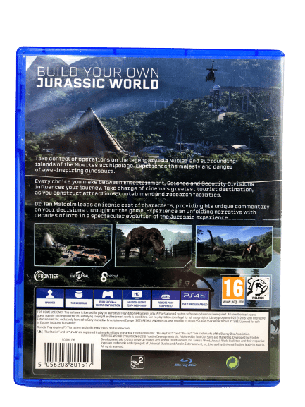 Excellent condition & 100% complete with contents: JURASSIC WORLD EVOLUTION for SONY PlayStation 4 / PS4. This preowned game is in superb condition and comes complete with case, cover, and game disc. A tidy and complete collector’s item.