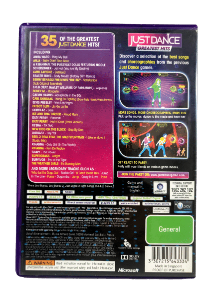 One of the RAREST KINECT DANCE games in the World, in good condition & 100% Complete with Contents: JUST DANCE GREATEST HITS for Xbox 360.