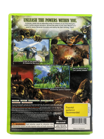 Kameo Elements of Power is a larger-than-life journey filled with intense combat, magnificent exploration, and innovative action. The future of the world rests with Kameo, who must capture, harness and unleash a wide variety of monsters to rescue three of his elemental ancestors and destroy the dark Troll King who threatens the planet and its wildlife. Kameo will be granted the power to transform into incredible monsters, but they must be honed to their full potential as he makes his way through a world filled with strange life and breathtaking sights. Product Features Transform in real time into a dazzling array of incredible monsters, each with their own fantastic strengths and fighting styles Employ 10 elemental monsters from the five Energy Elements: Grass,