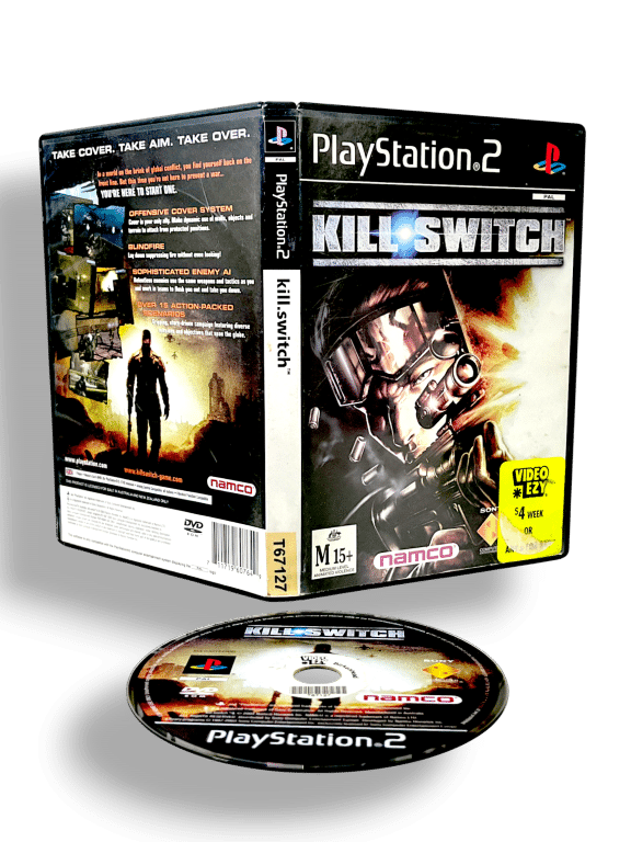 KILL SWITCH: TAKE COVER, TAKE AIM, TAKE OVER (Kill.Switch) for SONY PlayStation 2 / PS2. This preowned game is in very good condition, with very mild disc surface imperfections only which does not hinder performance or game play in the slightest. Includes pictured case + cover. Ex-rental game.