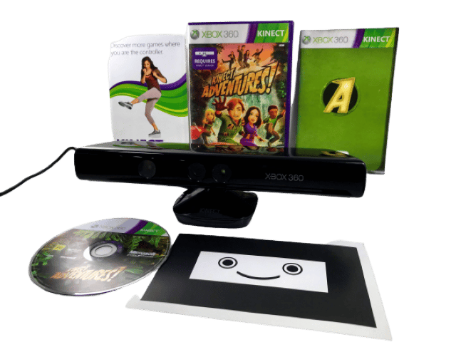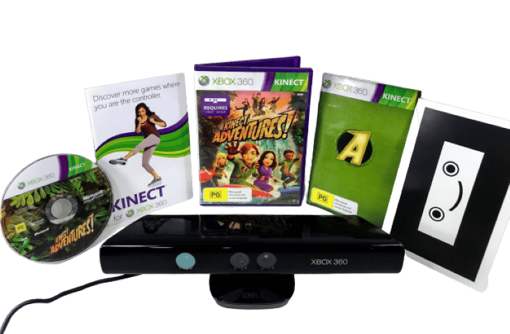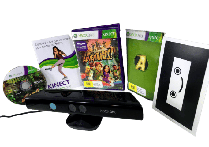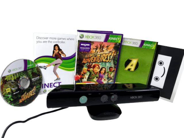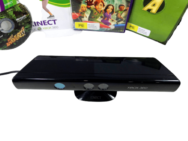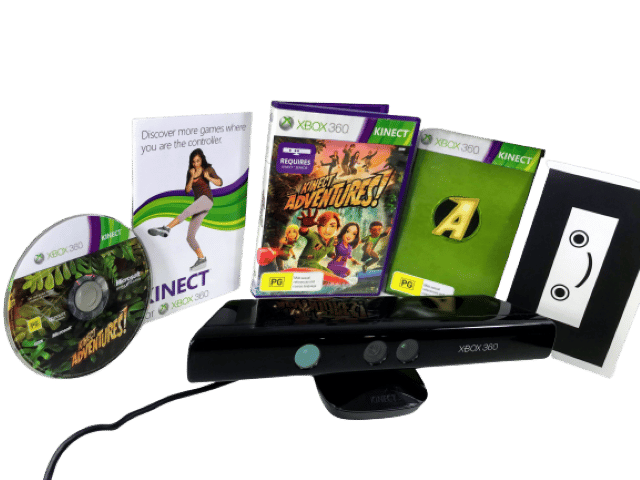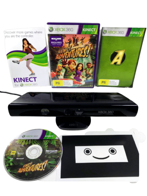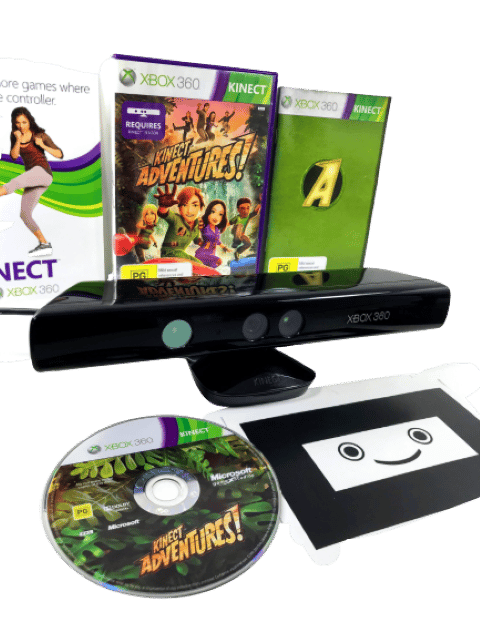 RARE FIND: MINT IN BOX: Official XBox 360 KINECT Camera / Sensor + Kinect Adventures Game, and Complete with Kinect Adventures Game. This preowned Kinect Sensor Camera is in excellent condition, and the game is pristine also and complete with manual and internal cards. Even the box has been well cared for with only very light box wear. A lovely matching boxed gift set. Refer photographs.