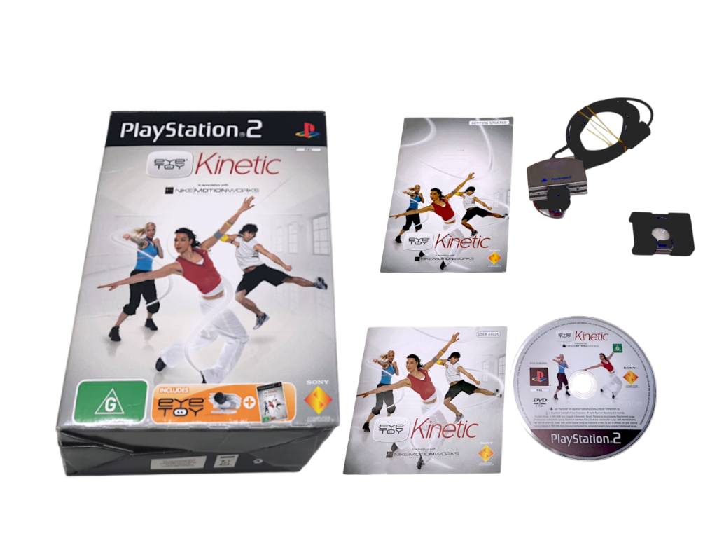 Description: PlayStation 2 Kinetic is a fitness-focused bundle using the EyeToy camera for motion-based gameplay. Designed for home workouts, it includes exercise routines and interactive activities. A unique accessory set for PS2 that blends gaming with fitness.