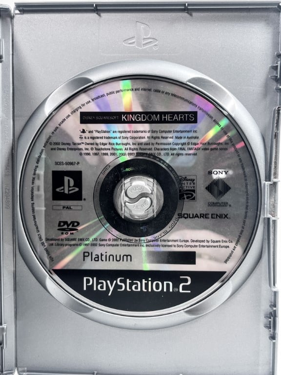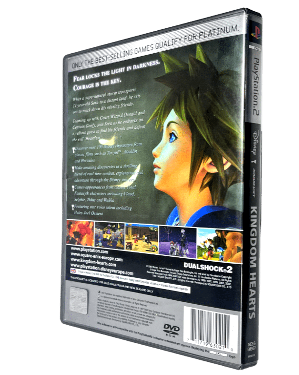 Kingdom Hearts for SONY PlayStation 2 / PS2. This preowned game a genuine Platinum Edition and is in very good condition. Includes authentic Platinum Edition case + cover + manual + game disc.