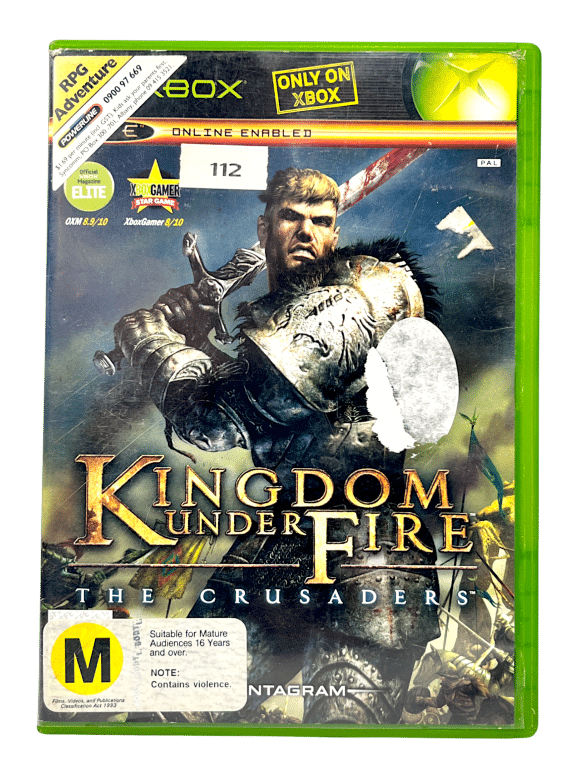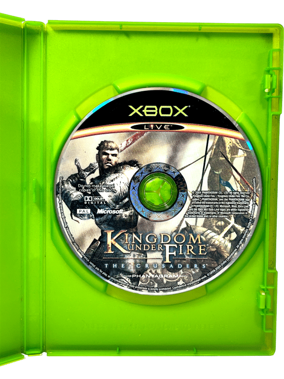 Kingdom Under Fire: The Crusaders for Original Xbox. This preowned game is in good playing condition with light scratches only which do not affect gameplay or performance in any way. Includes case + cover + game disc. Please note that the manual is not included in this listing, but the game is self-explanatory, and the instructions are readily available online.