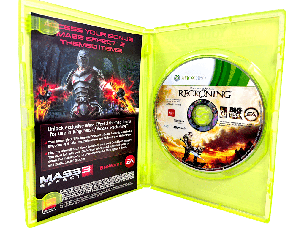 KINGDOMS OF AMALUR RECKONING for Xbox 360. This pre-owned game is in excellent condition and includes original case cover, manual / booklet, and game disc.