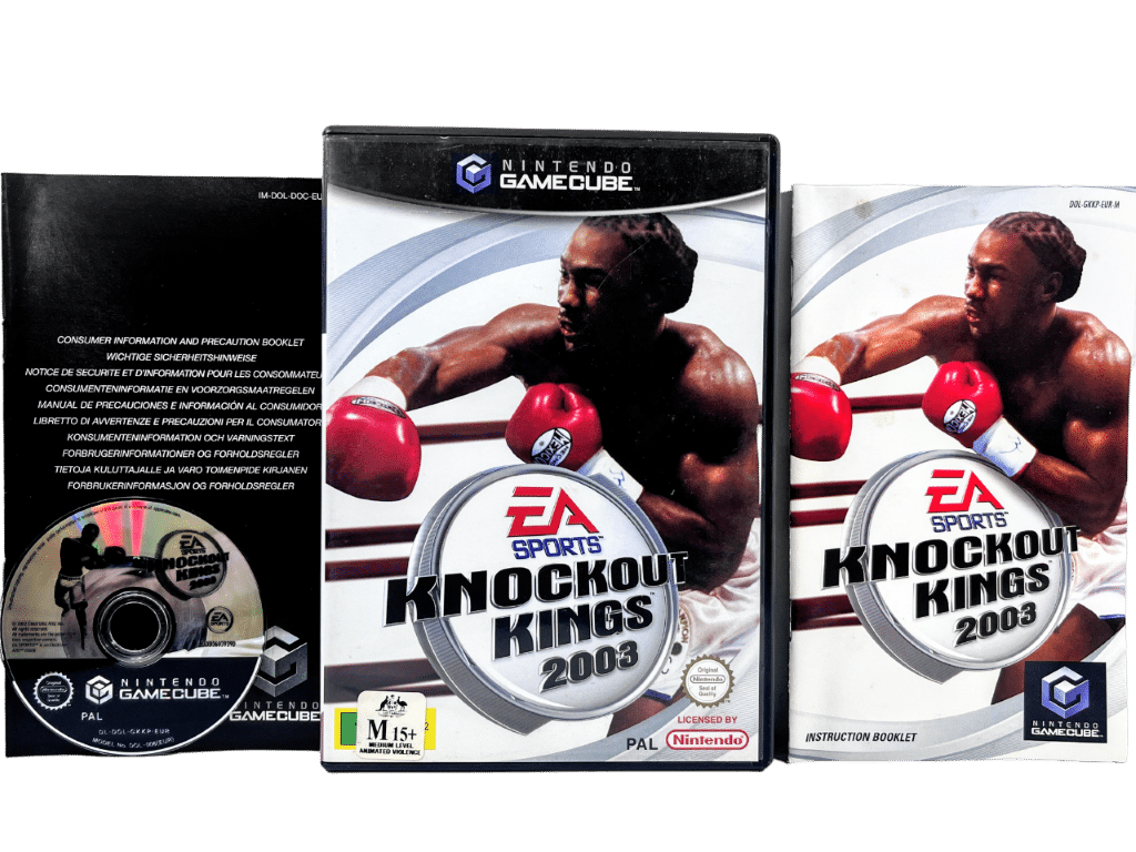 Excellent condition & complete with manual: Knockout Kings 2003 for Nintendo GameCube. This preowned game is in superb condition and comes complete with case, cover, Manual / Booklet, Nintendo GameCube Booklet, and game disc. . Case has some mild laminate wear, but this is purely cosmetic, and each of the internal contents are great.