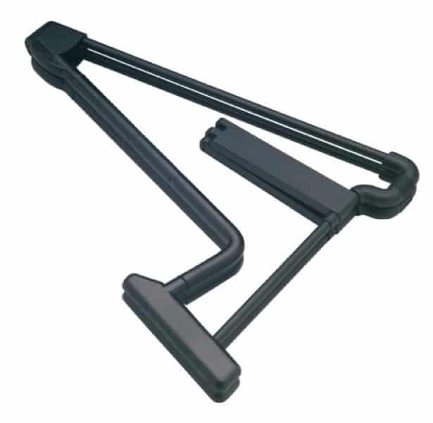 This proven E-Guitar Stand was revised and features a new adjustable support system. Instruments of different sizes can be placed in the 4 adjustable positions. The robust metal construction and its stability and durability will not only be appreciated by the “Heavy Metal” fraction. For storage and transport the stand folds flat. The rubberized support arms provide the guitar with sound and stable footing and protect the guitar finish. And as expected, this popular stand is available in a range of colors.