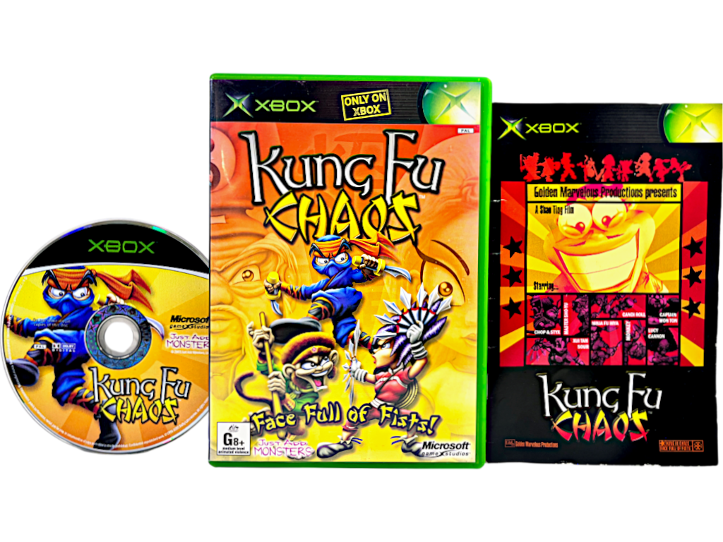 - Combat — with a twist. It will take more than just a cool move to win this game. “Kung Fu Chaos” features a combat system with the added twist of humiliation. Pummel opponents with slick moves or power up with taunts that add to the impact. Combat moves are easy to learn but deep enough for experienced players to gain new skills and really go to town on their enemies.