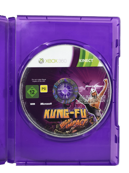 RARE XBox 360 Kinect Game – with authentic New Zealand PAL Region Game Disc: KUNG FU HIGH IMPACT / KungFu High Inpact / Kung-Fu High Impact for XBox 360. This preowned game disc comes inside Kinect XBox 360 Case with EB Games paper cover (not original paper cover). Some light superficial markings / cosmetic scratches, but these are very minor imperfections which do not affect game play in any way.