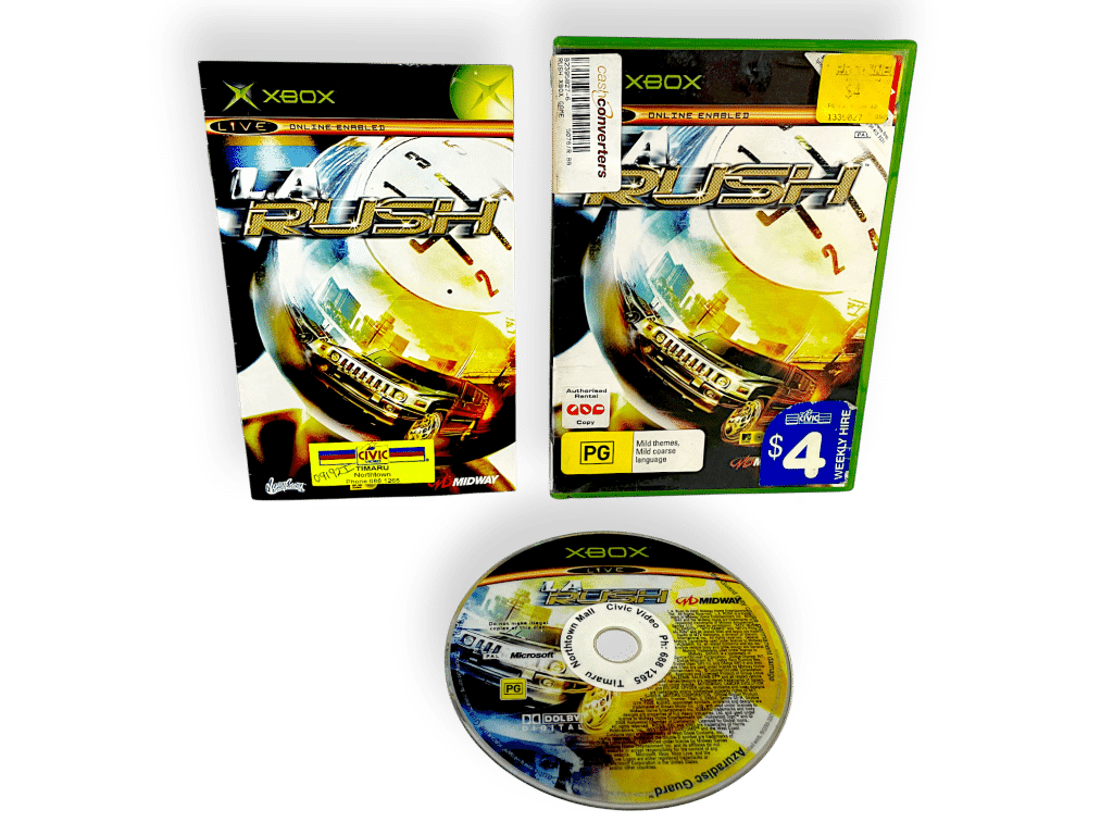 LA RUSH for Original XBox. This preowned game is in good condition and complete with pictured ex-rental case + cover + manual / booklet + game disc.