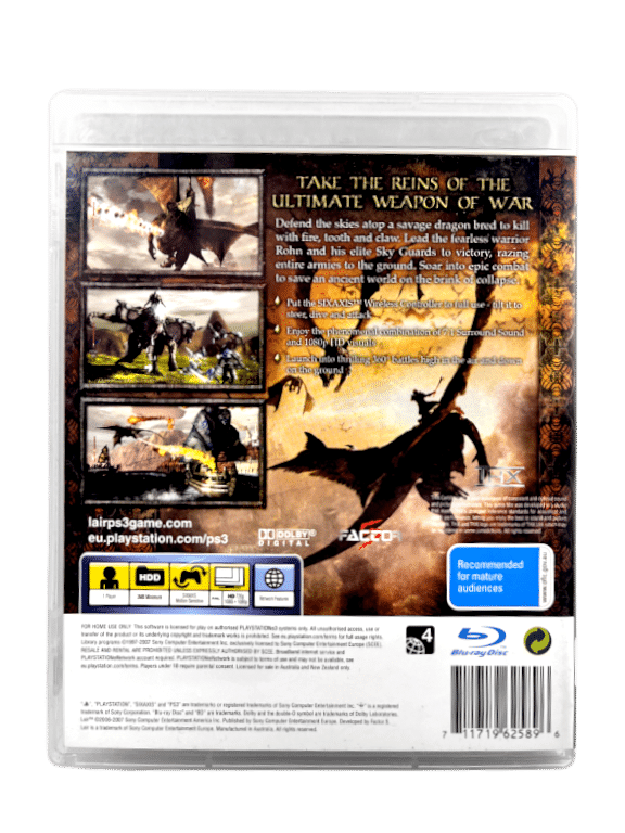 Excellent condition & complete with manual: LAIR The Video Game for SONY PlayStation 3 / PS3. This preowned game comes complete with case + cover + manual / booklet + game disc. Eye of Judgment promo card not included.