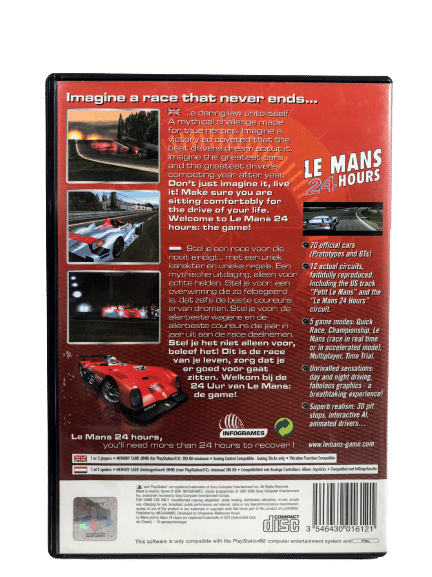 The Original Black Case Edition in Excellent Condition & Complete with Manual: Le Mans 24 Hours for SONY PlayStation 2 / PS2. This preowned game is in superb condition, with original Official BLACK PlayStation 2 Case, “Black Edition” Paper Cover, Manual / Booklet, and Game Disc. A tidy collector’s item. When I inspected the disc closely under reflective light, I could just make out some faint markings and superficial scratches, but these are very minor cosmetic imperfections only which do not affect game play in the slightest.
