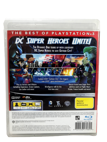 LEGO Batman 2 DC Superheroes for SONY PlayStation 3 / PS3. This preowned game is in good condition with faint markings / feather scratches only, and includes case + cover + game disc. Disc is a genuine Original print disc. Please note that the MANUAL IS NOT INCLUDED in this listing, but the game is self-explanatory, and the instructions are readily available online.