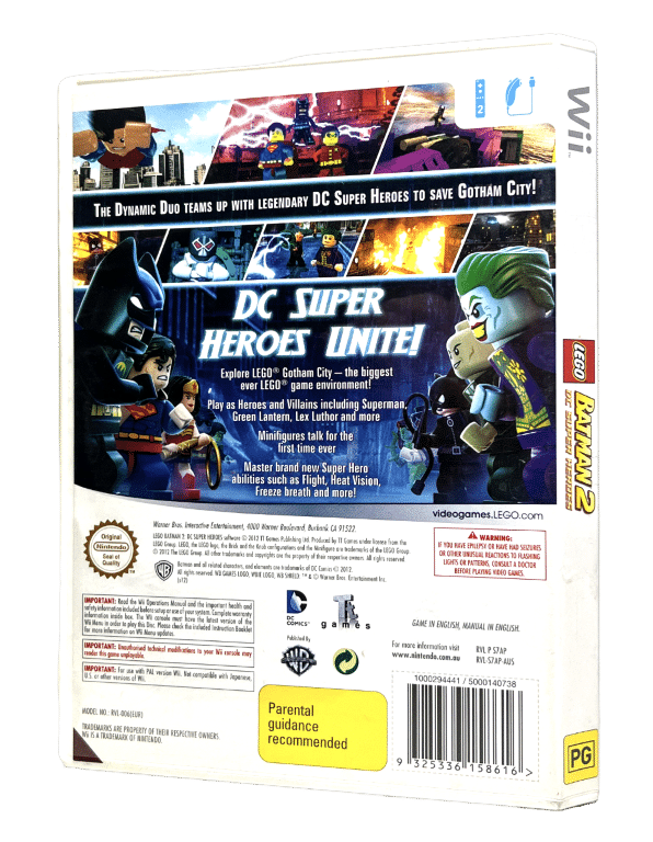 In LEGO Batman 2: DC Super Heroes, the Dynamic Duo of Batman and Robin join other famous super heroes from the DC Universe including Superman, Wonder Woman and Green Lantern to save Gotham City from destruction at the hands of the notorious villains Lex Luthor and the Joker. Batman fans of all ages will enjoy a new and original story filled with classic LEGO videogame action and humour as players fight to put the villains back behind bars.