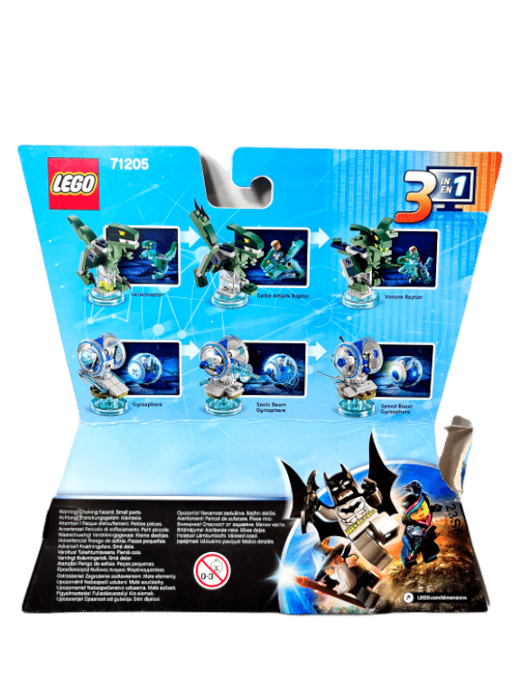 LEGO Dimensions Team Pack 71205: Jurassic World (BOXED + COMPLETE). This preowned genuine Lego Dimensions set is in good condition and comes complete with all pictured contents. Original box included – the box having a visible tear on the front as pictured, but the internal contents are all there. We have taped the lid closed with removeable white stickers pictured (these easily peel off).