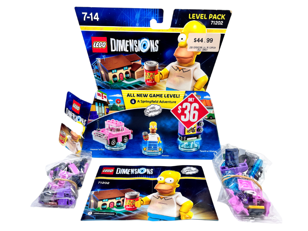 This preowned Lego Dimensions box set includes all contents EXCEPT HOMER SIMPSON. NOT a complete bundle. All other pieces appear to be there. Includes original box pictured.