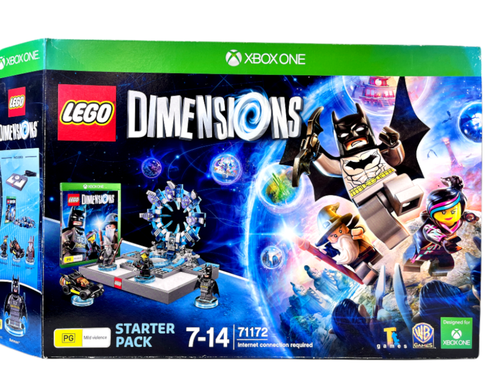 RARE FIND: The Original Launch COMPLETE PLAYING BUNDLE (Starter Pack) in Excellent Condition & Complete with Inner Contents: LEGO DIMENSIONS COMPLETE BOX SET for Xbox One. This preowned Box Set is in superb condition and contains all original contents: