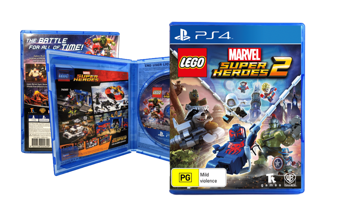 Excellent Condition & 100% Complete with Contents: LEGO MARVEL SUPER HEROES 2 / Lego Marvel SuperHeroes 2 for SONY PlayStation 4 / PS4. This preowned game comes complete with case, cover, promo card, and game disc.