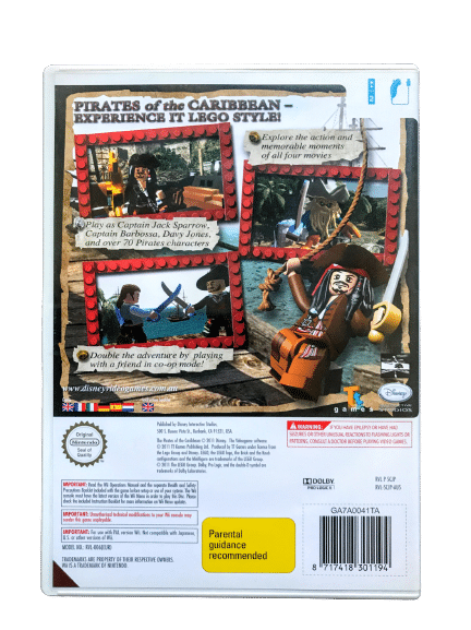 LEGO PIRATES OF THE CARIBBEAN for Nintendo Wii. This preowned game is in very good condition and comes complete with case + cover + manual / booklet + game disc. Some faint superficial markings / cosmetic scratches, but these are extremely minor and purely cosmetic imperfections which do not affect game play in any way. Note: when stock levels reduce to showing only one (1) copy of this particular game remaining in stock, the manual is no longer included.