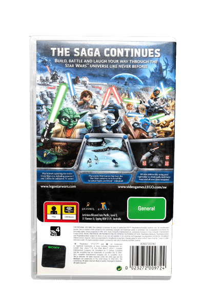Excellent condition & 100% complete with contents: LEGO STAR WARS 3 THE CLONE WARS for SONY PSP / PlayStation Portable. This preowned game is in superb condition and comes complete with case, cover, manual / booklet, and game disc inside its miniature UMD case.