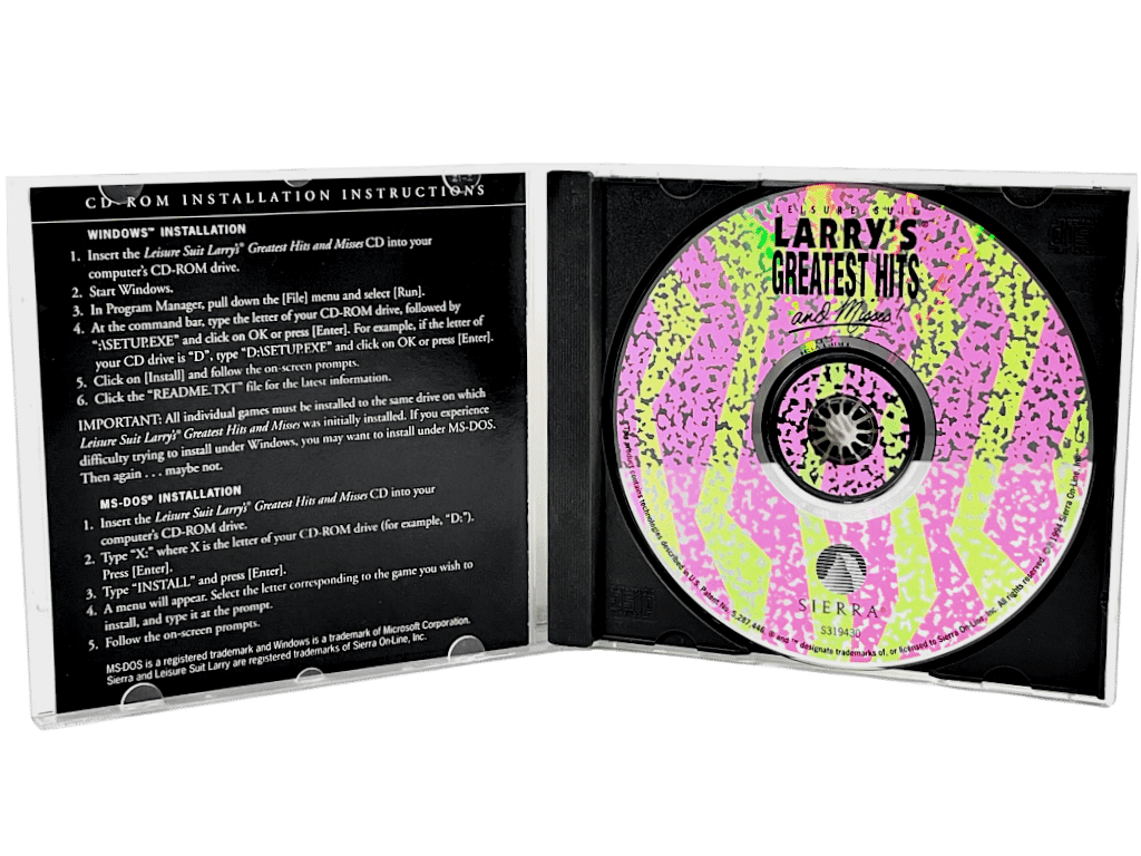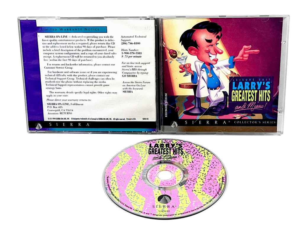 A compilation featuring classic Leisure Suit Larry titles and content from Sierra’s iconic adventure catalogue. Known for its humour and point-and-click gameplay, this release is a collectible for fans of classic Sierra adventure games and retro PC history.