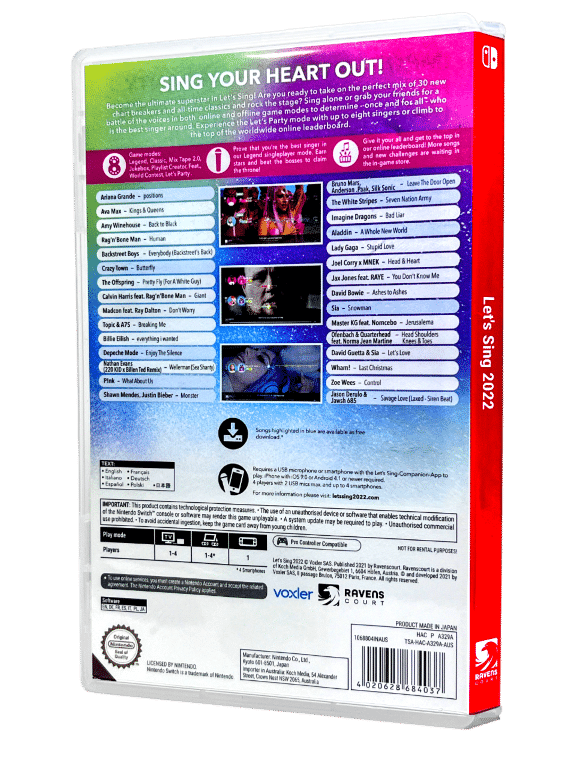 Excellent condition & 100% complete with contents: LET’S SING 2022 for Nintendo Switch. This preowned game comes complete with case, cover, carded insert, and game cartridge.