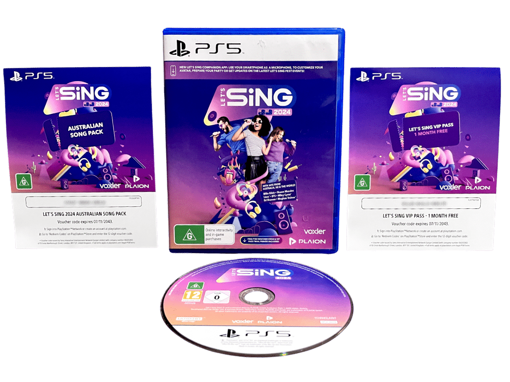 Let’s Sing 2024 for SONY PlayStation 5 / PS5. This preowned game is in mint condition and complete with case + cover + carded inserts + game disc. Any single used paper voucher codes are assumed no longer valid, but these were promotional downloads only and are not required for gameplay or completion. The full Let’s Sing 2024 PlayStation 5 game is contained on the game disc.