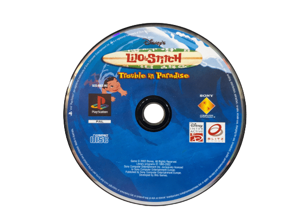 LILO and STITCH TROUBLE IN PARADISE for SONY PlayStation 1 / PS1. This preowned game disc is in good playing condition – tested – with light markings and superficial scratches which do not inhibit game play in the slightest. Please note that the original case is not included, but the disc will be packaged and posted securely inside an empty case, or can be collected from our Appleby Games Christchurch Store during store opening hours.