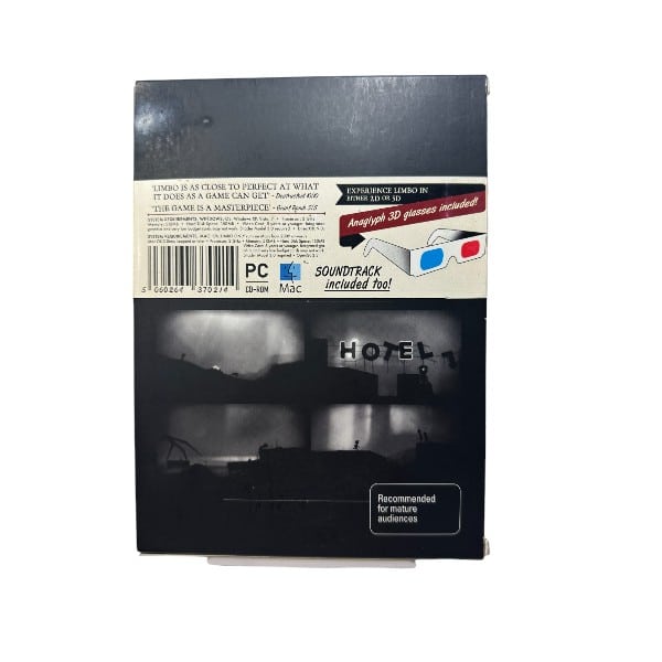 Mint Condition and 100% complete: LIMBO Special Edition for PC / Mac. This preowned game includes Special Edition Cardboard COver, Slip, art cards, 3D Glasses and disc. Refer photographs for the Special Edition Photos.