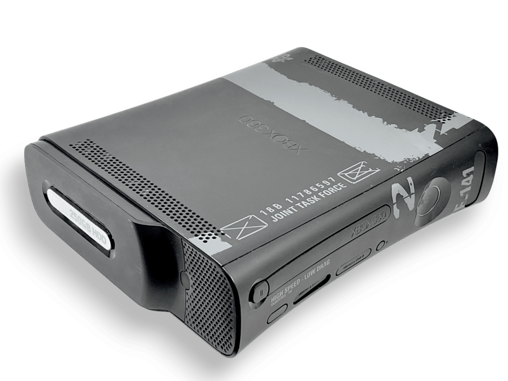 The Xbox 360 Modern Warfare 2 Limited Edition Console with exclusive Call of Duty-inspired design and 250GB storage capacity.