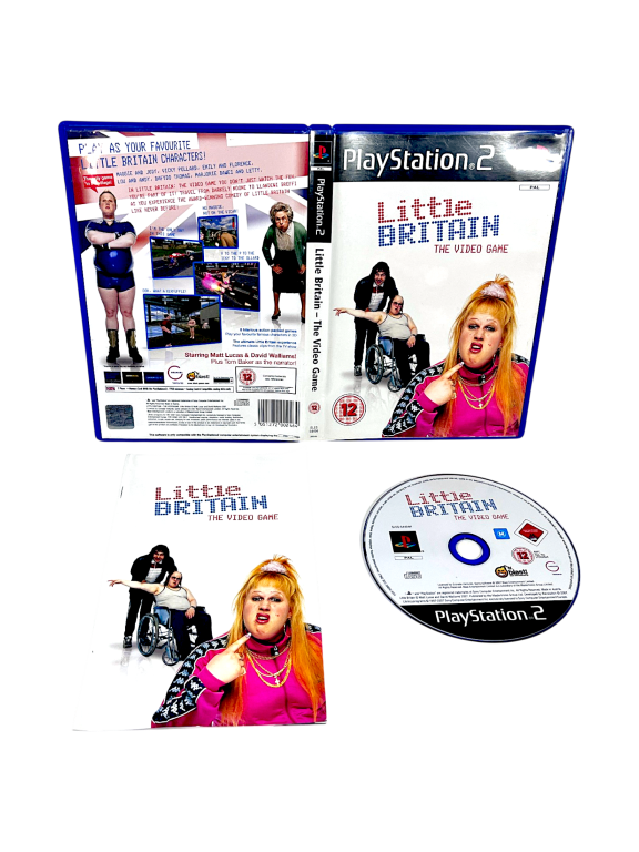 Little Britain The Video Game (PS2). This preowned game is in good condition and includes pictured contents. Very mild disc surface imperfections such as light scratches but these are purely cosmetic and do not hinder performance or gameplay in the slightest. Refer photographs for included contents.