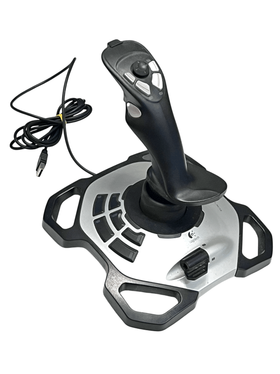This Logitech PC flight stick joystick controller is designed for flight simulation enthusiasts seeking precise aerial control and immersive piloting experiences. Featuring ergonomic design, responsive directional input, and programmable buttons, it is well suited for classic and modern flight simulator titles on PC. Logitech’s reputation for durable peripherals makes this joystick a dependable choice for both casual and dedicated sim pilots. Ideal for use with games like Microsoft Flight Simulator or combat simulators, it provides enhanced realism compared to keyboard or gamepad controls. A practical accessory for simulation setups, collectors, and retro PC hardware enthusiasts alike.