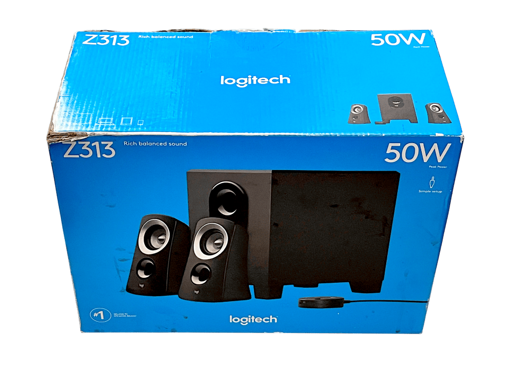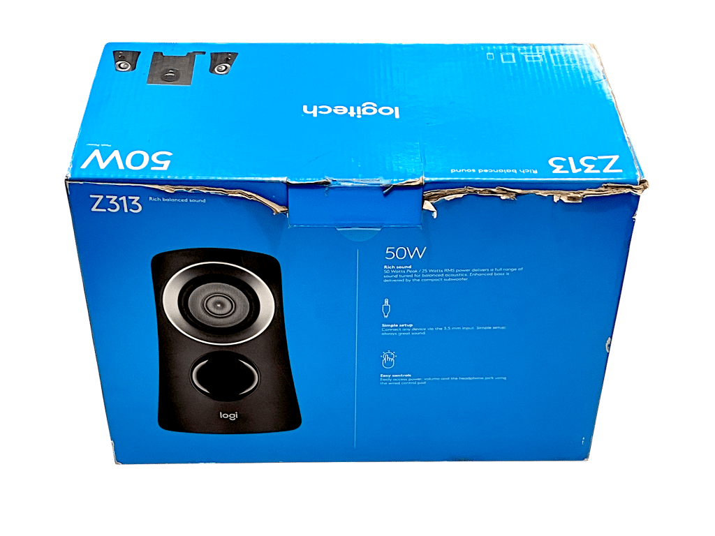 Logitech Z313 2.1 Speaker System (50W) *BOXED*. This pre-owned boxed Logitech speaker system is in good condition and complete with its original box.